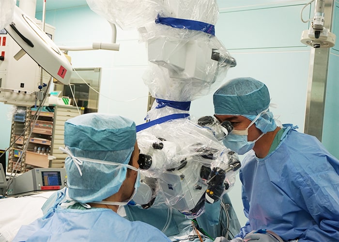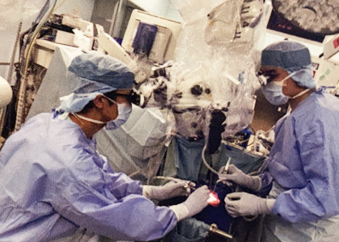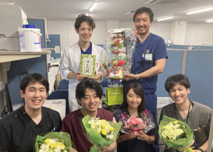 ➤ 大学院生からの声 山野晃生 はじめまして。筑波大学医学医療系脳神経外科の山野晃生です。 私は鹿児島県にて生まれ育ち、大学から筑波大学医学群医学類に進学し、現在はつくば市に在住しています。 早いもので茨城県にきて15年以上が経ちました。 2016年に筑波大学を卒業。筑波大学附属病院の初期臨床研修プログラムを経て筑波大学脳神経外科の研修プログラムへ入り、2024年より大学院(筑波大学人間総合科学学術院)に進学して現在に至ります。 ※画像は手術中の様子です。顕微鏡を使った頭蓋底手術を専門とするため修練しています。 脳神経外科を目指すまで 私は初期研修をスタートする段階では具体的な進路は決まっておりませんでした。様々な診療科をローテーションさせていただいた上で、特に脳神経に魅力を感じて「脳神経内科」と「脳神経外科」の2つの進路で悩みました。 最終的には脳神経外科診療のスピード感や時に劇的な神経機能の改善が得られる様を経験し、筑波大学脳神経外科への入門を決意しました。 後期研修プログラム 私は4年間の後期研修プログラムのうち、はじめの3年間を関連施設にて過ごしました。関連施設での経験は脳血管障害、神経外傷などのいわゆるcommon diseaseが中心となります。多くの手術執刀もご指導いただき、外科医としての基本的な手技や心がけを学びました。 4年目の研修生活は基幹施設である筑波大学附属病院で過ごしました。ここでは比較的頻度の少ない脳腫瘍、小児脳神経疾患、機能疾患、てんかん、脊髄疾患について幅広く経験することができました。また、脳卒中科の研修では脳神経内科・救急診療科の先生と共に、最新の脳卒中診療の現場を勉強させていただきました。 後期研修の4年間で脳神経外科専門医の受験に必要な経験は十分に得られます。専門医受験には学会発表や論文執筆も必要となりますが、これらについても手厚くご指導いただきました。 また、COVID19流行を契機にカンファレンスのWEB化が普及し、どの施設にいてもエキスパートの先生方と経験を共有することもできます。私は筑波大学では珍しく同期がいなかったのですが、多くの先輩・後輩にも恵まれ、充実した研修を行うことができました。後期研修を終えた翌年の夏には脳神経外科専門医試験が待っています。 専門医とサブスペシャリティー 無事に脳神経外科専門医の試験に合格しましたら、自身のサブスペシャリティーへ進んでいきます。筑波大学には各分野のスペシャリストが揃っており、自身のキャリアもイメージしやすい環境にあると思います。専門医取得前から将来のサブスペシャリティーの希望など相談する機会が設けられ、早い段階から目標に必要な研修方法を設定できます。サブスペシャリティーについて具体的な希望がない先生には、その先生の特徴にあったサブスペシャリティーを相談しながら、決めていくことが可能です。 私の場合、手術の高い専門性に惹かれ、「良性腫瘍」「頭蓋底外科」を自身のサブスペシャリティーにしようと考えました。専門医取得後は筑波大学附属病院にて主にサブスペシャリティーに関連する症例を担当し、研鑽を積みました。 筑波大学脳神経外科では脳神経外科医としてあらゆる可能性を見出せる環境があります。すでに夢・目標がある先生にはそれを最大限サポートし、よりよい形での実現を目指します。具体的な目標が定まっていない先生にも、筑波大学では様々なサブスペシャリティーをもつ先生がいますので、各先生の背中をみて具体的な目標設定ができる環境です。 ※画像は学会発表風景です。自身の経験した症例や、研究についての発表を行っています。 大学院進学 筑波大学では多くの方が後期研修を終えた後に大学院へ進学します。私は臨床現場に身を置く中で、基礎研究を通してさらに科学的な思考能力を学ぶべく、大学院進学を志望しました。臨床で得られた疑問を基礎研究につなげ、将来の脳腫瘍治療に還元できるよう取り組んでいます。 臨床を少し離れ、研究に専従している大学院生が現在私を含めて6名います。私の研究テーマは悪性脳腫瘍の新規治療探索ですが、ホウ素中性子補足療法・再生治療・血管内デバイス開発など様々なテーマの研究がなされており、これも筑波大学の利点といえます。 最後に 脳神経外科は人の命のみならず、その人生にも貢献できる魅力があります。その中でも多彩な分野があり、幅広いキャリアパスが選択可能です。 筑波大学での後期研修はその可能性を広げ、皆さんの興味やライフスタイルに最適な専門性へ繋がるものと信じています。 ご興味がありましたら、いつでもお問い合わせください。医学生・研修医の方の見学をお待ちしております。 学会後の懇親会の様子です。無礼講で先輩たちと楽しむ日もあります。 ともに研修を積んでいるレジデントたちとの写真です。日々切磋琢磨しています。